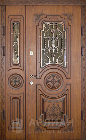 Входная дверь для загородного дома с коваными элементами №115