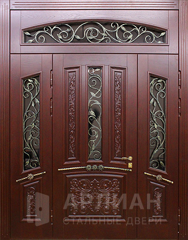 С ковкой стальная арочная дверь в частный дом №91