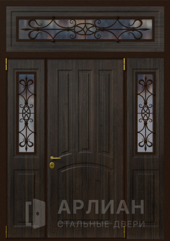 Парадная дверь с золотой патиной и фрамугой №408